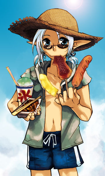 麦藁帽子が爽やかなのに被り付いてる本人は食に夢中、と、多分一番キャラ特性を特化させたイラストではないかと…(笑)